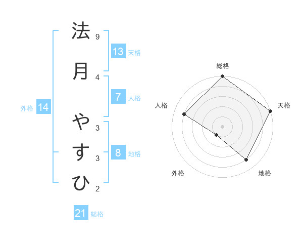 法月 やすひさんの天格は13画の5点!
