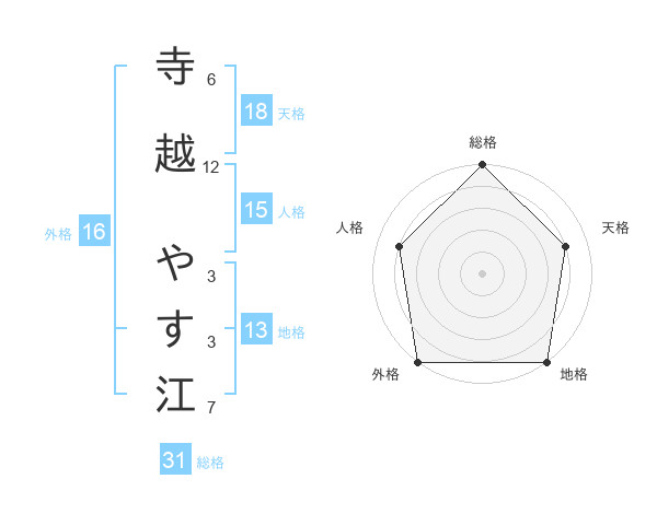 寺越 やす江さんを姓名の画数から五運を鑑定