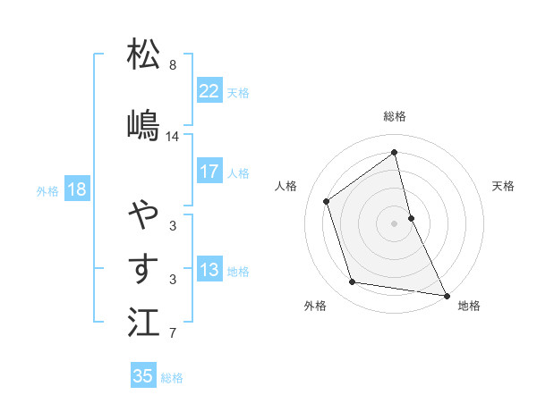 松嶋 やす江さんを姓名の画数から五運を鑑定