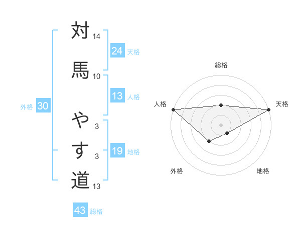 対馬 やす道さんを姓名の画数から五運を鑑定