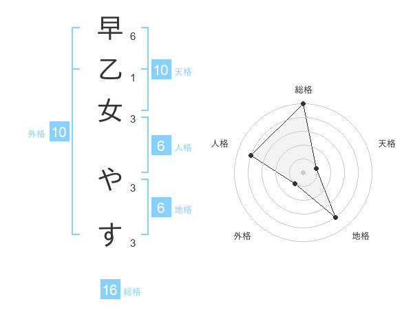 早乙女 やすさんを姓名の画数から五運を鑑定
