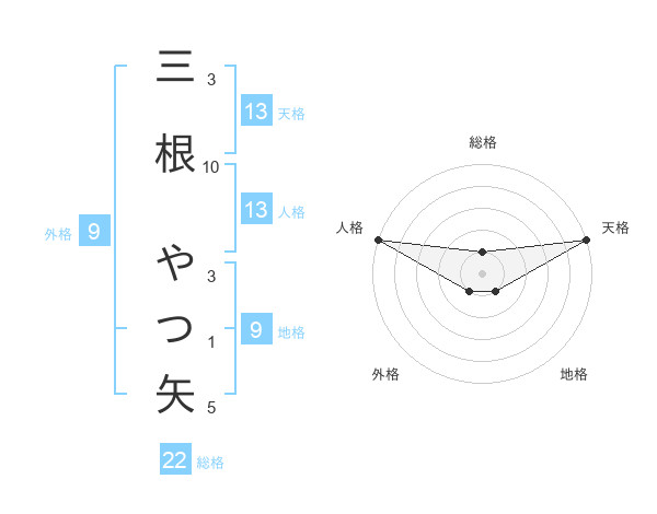 三根 やつ矢さんを姓名の画数から五運を鑑定