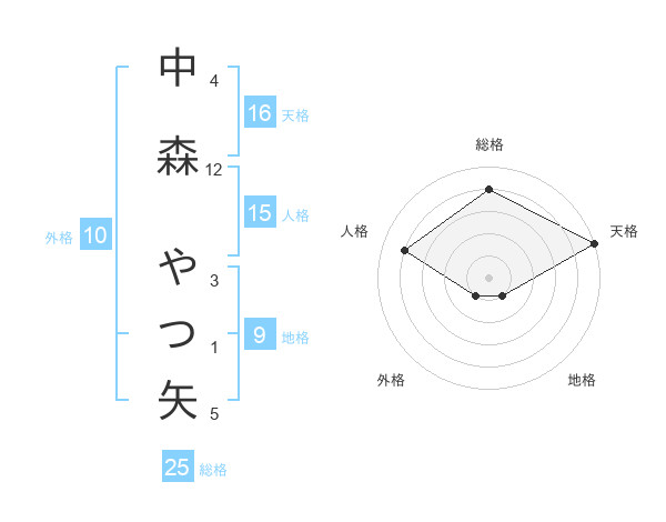 中森 やつ矢さんを姓名の画数から五運を鑑定