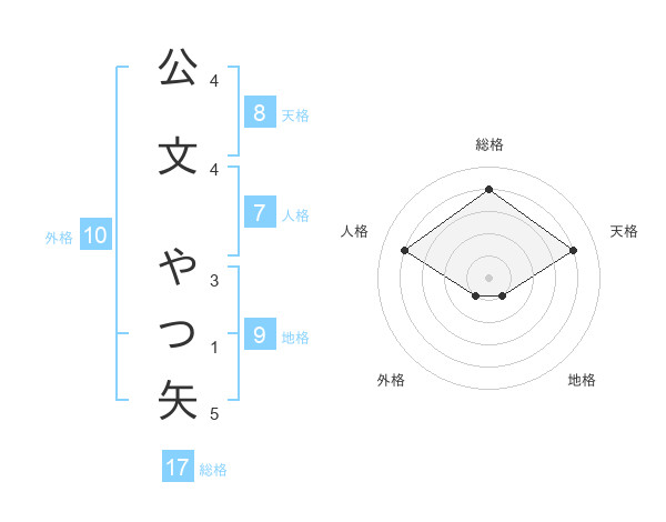 公文 やつ矢さんの総格は17画の4点!