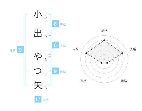 小出 やつ矢さんの天格は8画の4点!