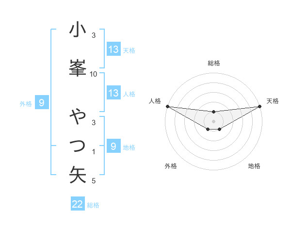 小峯 やつ矢さんを姓名の画数から五運を鑑定