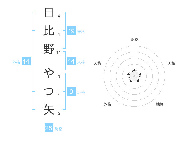 日比野 やつ矢さんを姓名の画数から五運を鑑定