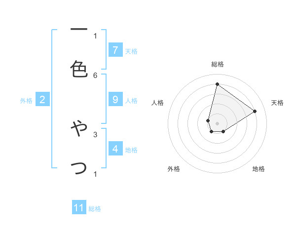 一色 やつさんの総格は11画の4点!