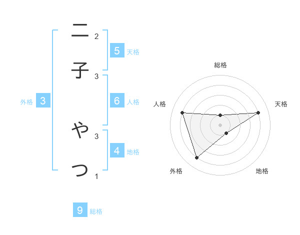 二子 やつさんの総格は9画の1点!