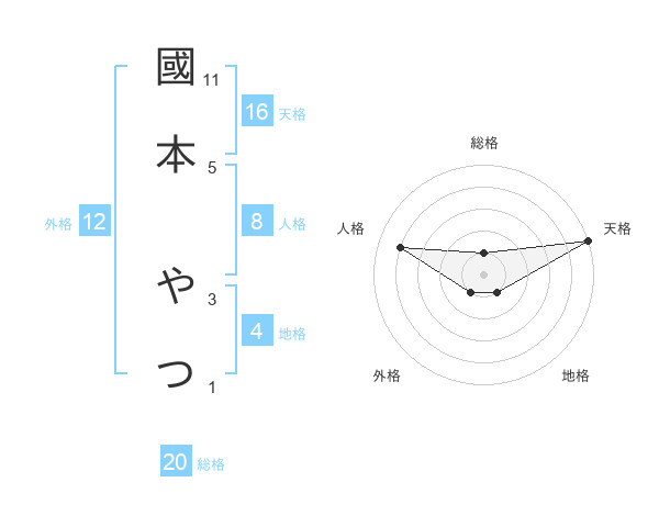 國本 やつさんの総格は20画の1点!