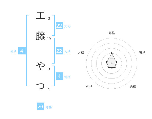 家系が持つ宿命的な運勢を表します。祖先から受け継いだ苗字ですので自分の力が及びません。家柄を象徴します。