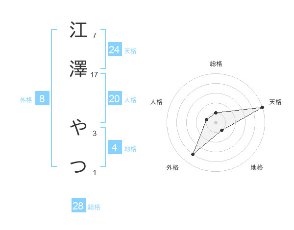 江澤 やつさんの総格は28画の1点!