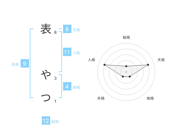 表 やつさんの総格は12画の1点!