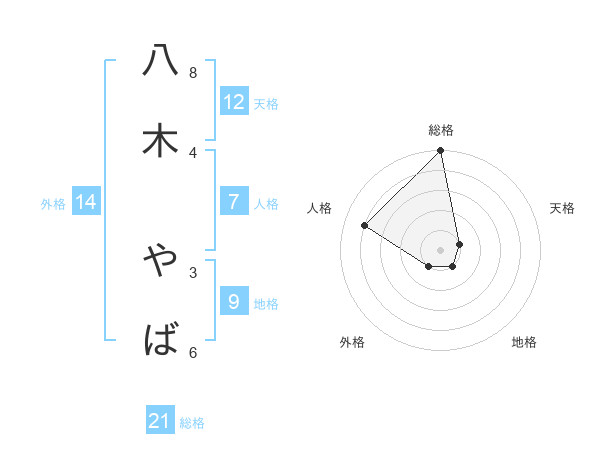 八木 やばさんの総格は21画の5点!