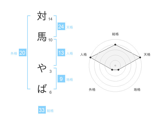 対馬 やばさんの天格は24画の5点!