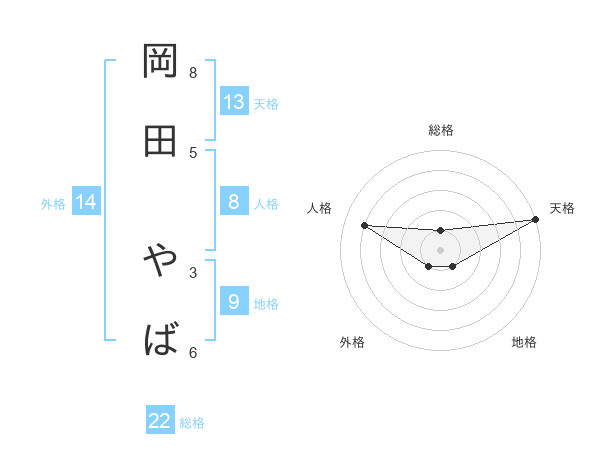 岡田 やばさんの天格は13画の5点!