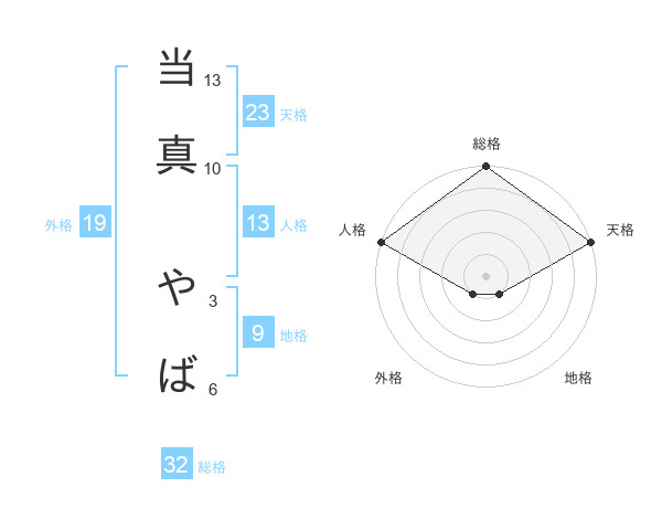 当真 やばさんの天格は23画の5点!