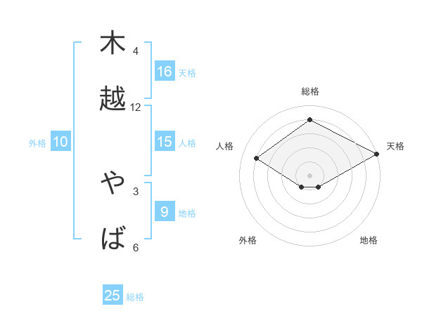 木越 やばさんの天格は16画の5点!