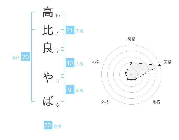 高比良 やばさんの天格は21画の5点!