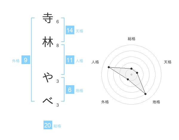 寺林 やべさんの総格は20画の1点!