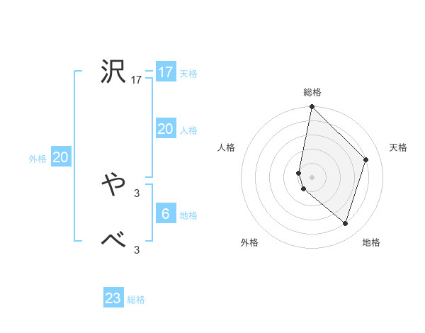 沢 やべさんの総格は23画の5点!