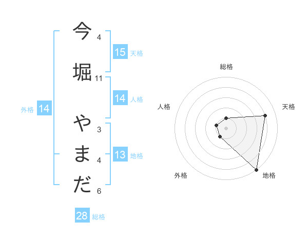 占い結果は姓名判断である以上、良い場合も悪い場合もありますが、決してお名前を誹謗中傷するものでなく、画数の自動計算によって得られたものです。また、本サイトの検索によって得られた鑑定結果で、第三者を誹謗中傷したり名誉を棄損するような行為を禁じます。