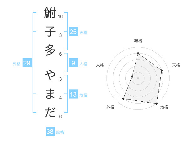 鮒子多 やまださんの総格は38画の4点!