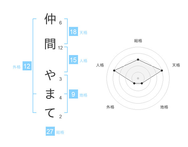 仲間 やまてさんを姓名の画数から五運を鑑定