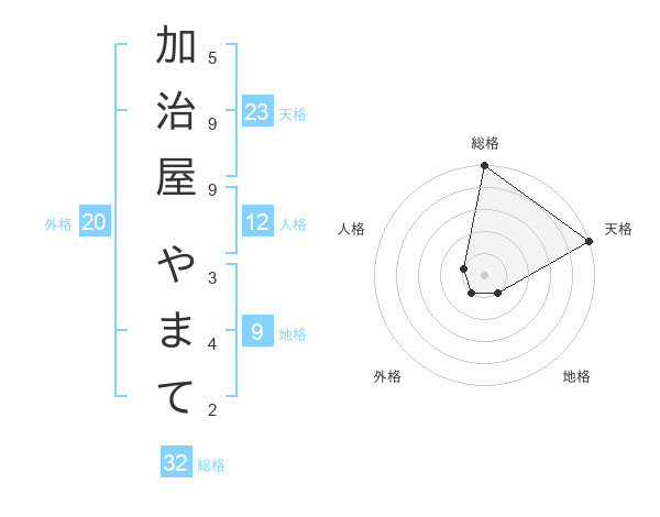 加治屋 やまてさんの天格は23画の5点