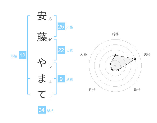 安藤 やまてさんの総格は34画の2点!