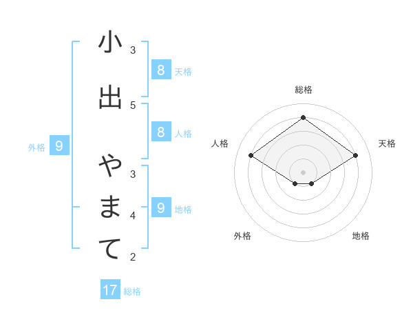 小出 やまてさんの総格は17画の4点!