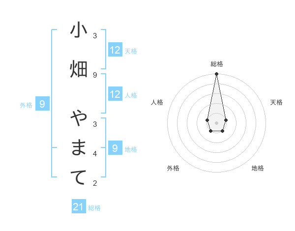 小畑 やまてさんを姓名の画数から五運を鑑定