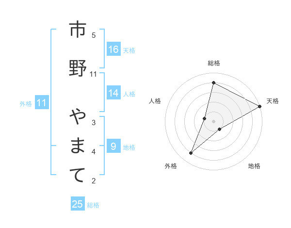 市野 やまてさんの総格は25画の4点!
