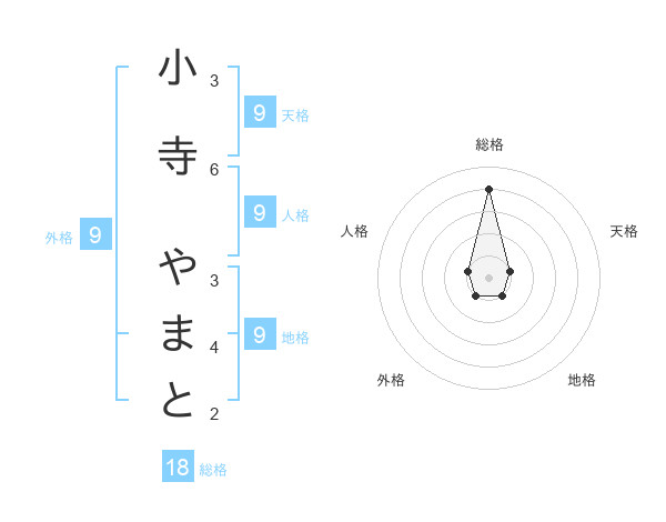 小寺 やまとさんの総格は18画の4点!