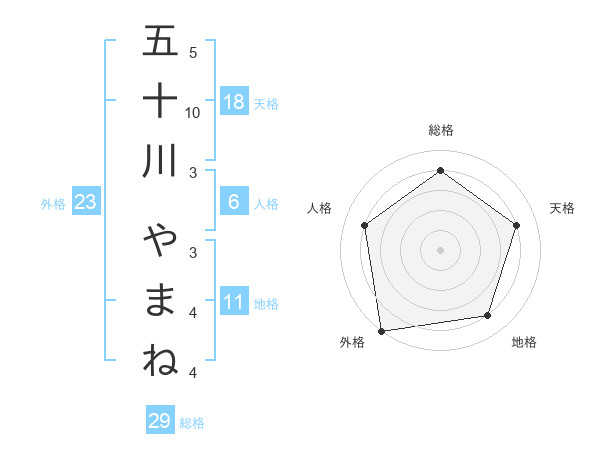 五十川 やまねさんを姓名の画数から五運を鑑定
