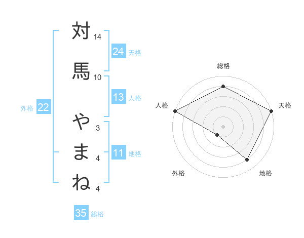 対馬 やまねさんを姓名の画数から五運を鑑定