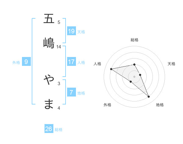 五嶋 やまさんを姓名の画数から五運を鑑定