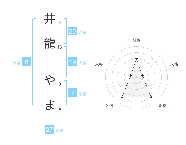 井龍 やまさんの総格は27画の3点!