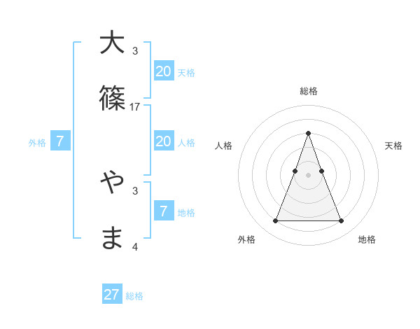 大篠 やまさんの総格は27画の3点!
