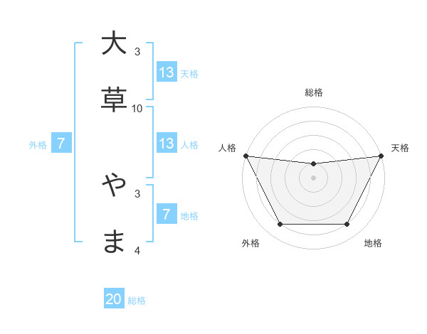 大草 やまさんの天格は13画の5点!