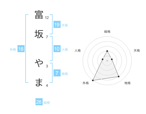 富坂 やまさんの総格は26画の2点!
