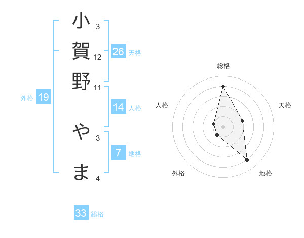 小賀野 やまさんの総格は33画の4点!