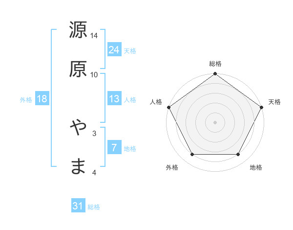 源原 やまさんの総格は31画の5点!