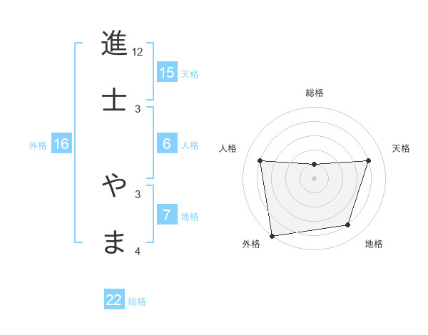 進士 やまさんの総格は22画の1点!