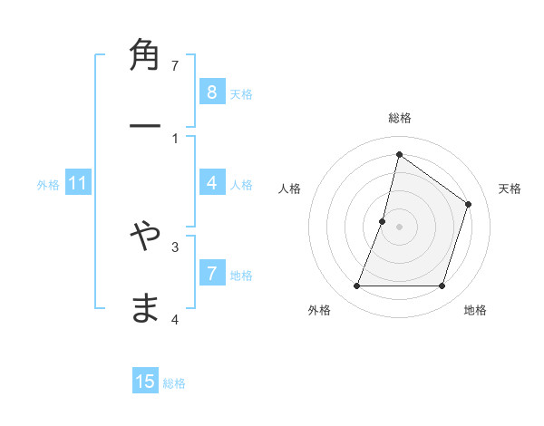角一 やまさんの総格は15画の4点!