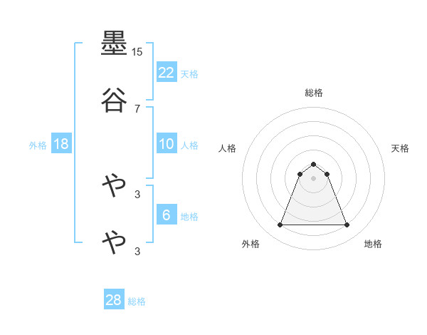 墨谷 ややさんの総格は28画の1点!