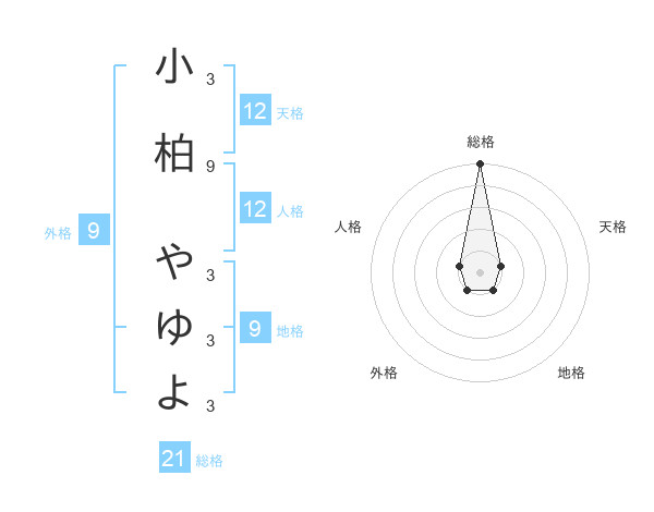 小柏 やゆよさんの総格は21画の5点!