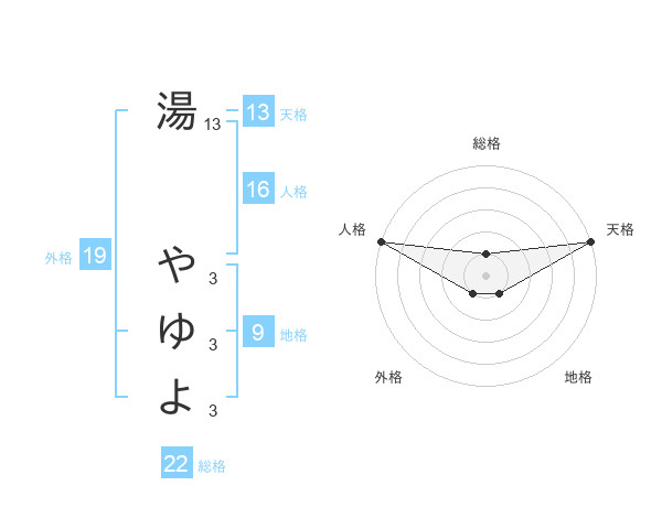 湯 やゆよさんの総格は22画の1点!