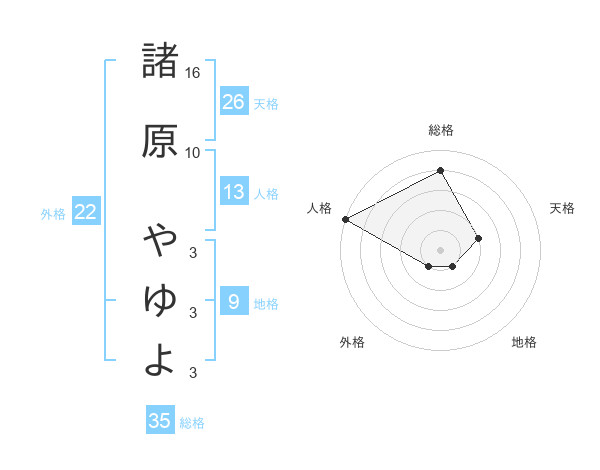 諸原 やゆよさんの外格は22画の1点!