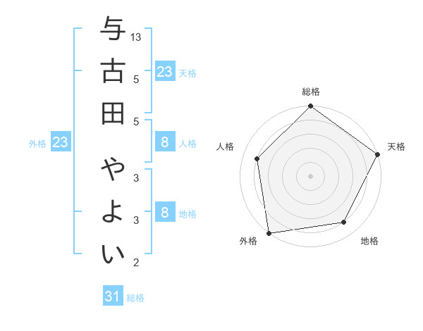 与古田 やよいさんの総格は31画の5点!